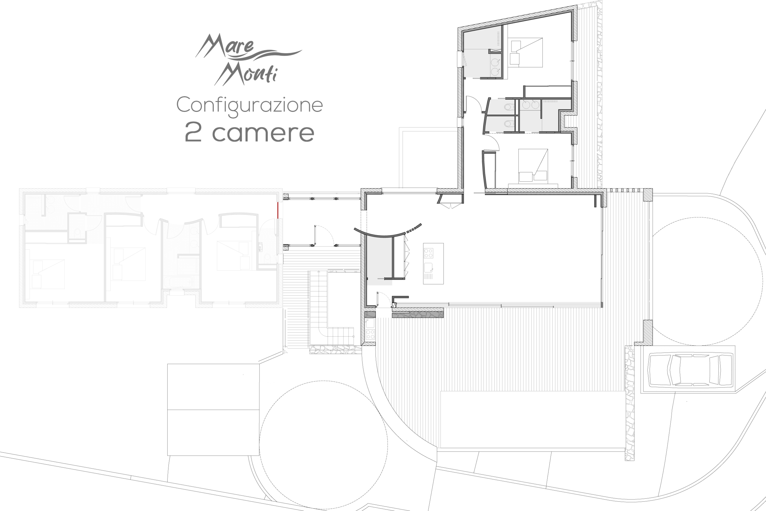 Configurazione3 camere con bagno e wc privati